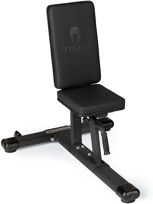 Titan Fitness Seated Stationary Bench, Rated 330 LB, Ergonomic Angled Back, Comfortable HeftyGrip Padding, Front Handle, Rear Wheels for Easy Transport, Utility Upright Weight Bench