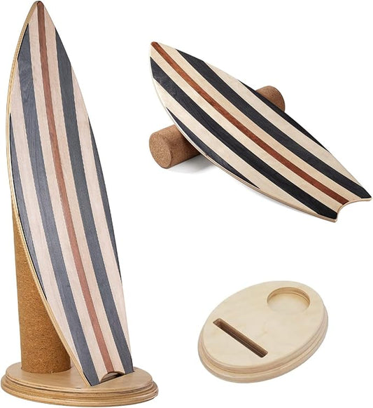 Premium Balance Board Trainer With Rollers - 10 Layer Wooden Exercise Non-slip Surface Fish Tail for Surfing, Paddle, Yoga, Training