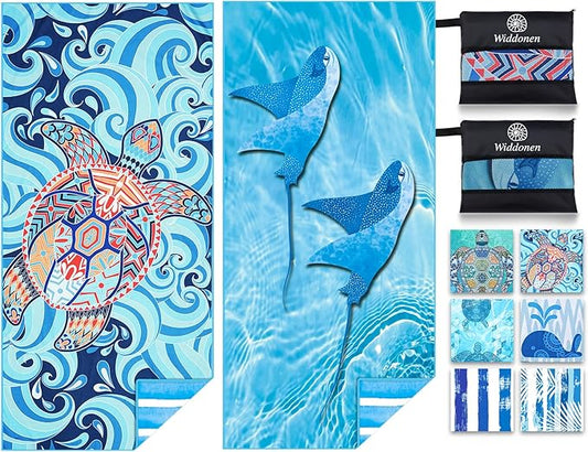 2 Pack Microfiber Lightweight Beach Towel Sand Free Quick Dry Absorbent Thin Compact Towels for Swimming Pool Camping Beach Accessories Large Easy Pack Travel Things for Vacation Essentials Gift