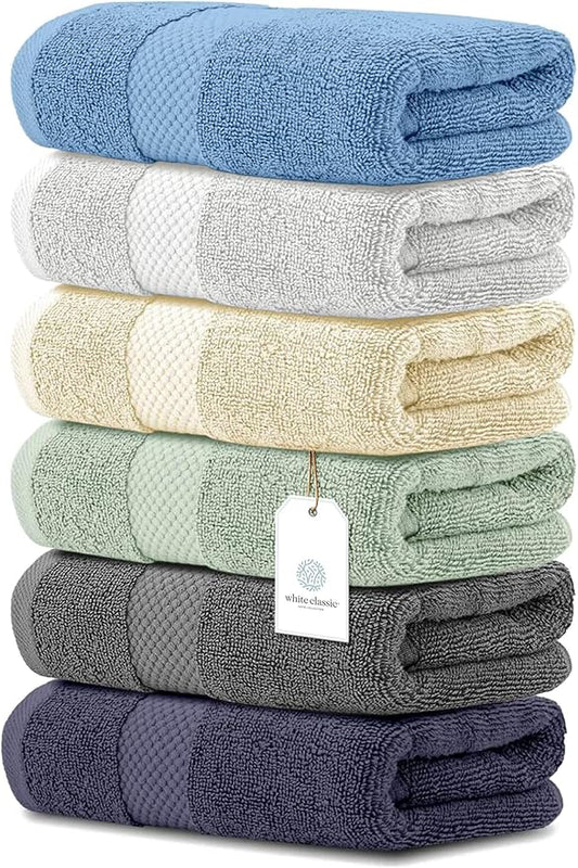 White Classic Luxury Hand Towels | Cotton Hotel spa Bathroom Towel | 16x30 | 6 Pack | Aqua