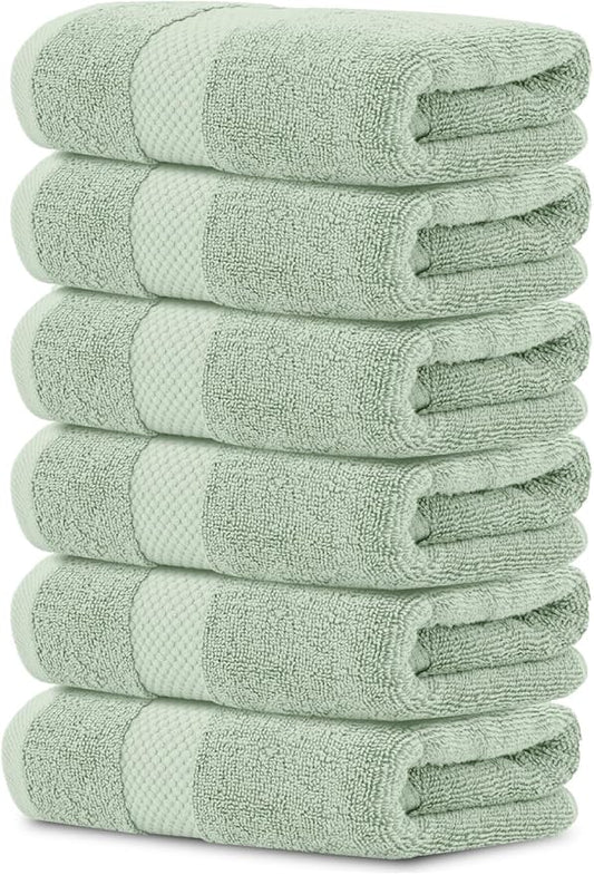 White Classic Luxury Hand Towels for Bathroom-Hotel-Spa-Kitchen-Set - Circlet Egyptian Cotton - 16x30 Inches - Set of 6 (Lt-Green)