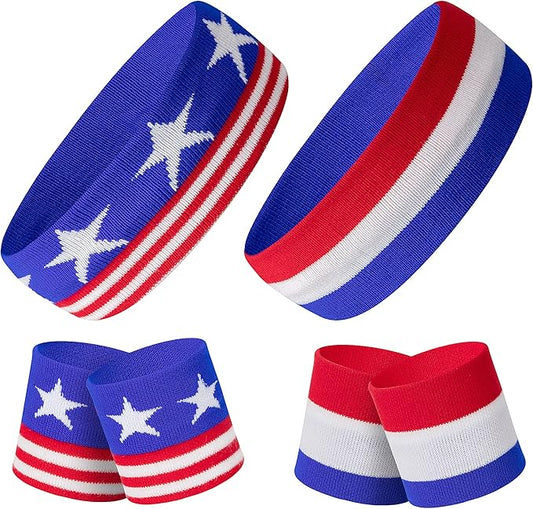 American Flag Sports Headband and Wristband- Striped Sweatband Set for Basketball, Football, Running, Gym, Exercise