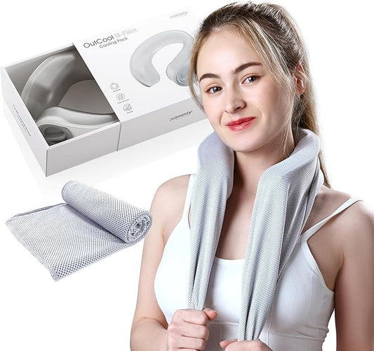 samply Ice-Filled Neck Cooler with Cooling Towel, Silent Non-Gel Ice Pack for Muscle Soreness,Cervical Pain Support, Cold Compress Therapy for Sports, Travel, Ideal for Hot Weather, Light Gray