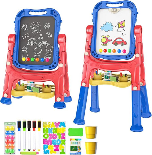 Amagoing Art Easel for Kids Age 3 4 5, Adjustable Standing Toddler Easel Drawing White Board Chalkboard with Painting Accessories, Birthday Gifts Learning Educational Toy for Boys Girl 3-5 Year Old