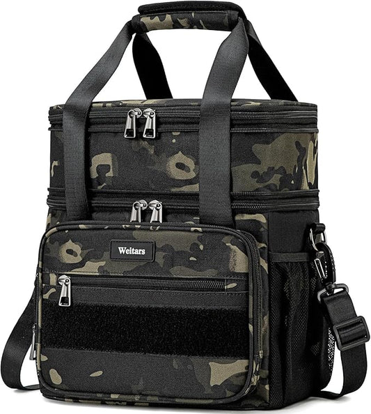 Weitars Tactical Lunch Box, Large Expandable Double Decker Lunch Box for Men,Insulated Lunch Bag for Women Durable Waterproof Leakproof Lunch Cooler Bag for Adults Work Outdoor Picnic Camping
