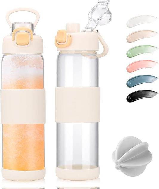 Glass Water Bottle for Protein Mixes 24 oz Protein Shaker Bottles with Whisk Ball Portable Leak Proof Shaker Blender for Fitness BPA Free