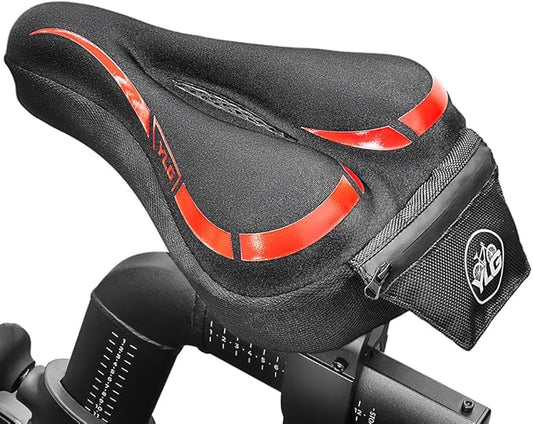 YLG Bike Seat Cover, Memory Foam & Gel Bike Seat Cushion Cover for Men Women, Comfortable Bicycle Seat Cover for Peloton/Fixed/Cruiser/Indoor/Outdoor Bike seat with Waterproof Cover