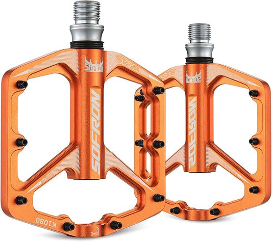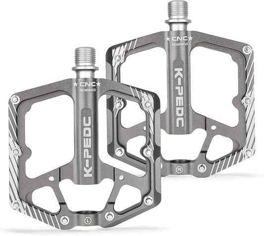 MTB Mountain Bike Pedal Platform Flat Bicycle Pedals Aluminum Alloy Non-Slip 9/16" Metal Bike Pedals with 3 Bearings for Road, BMX