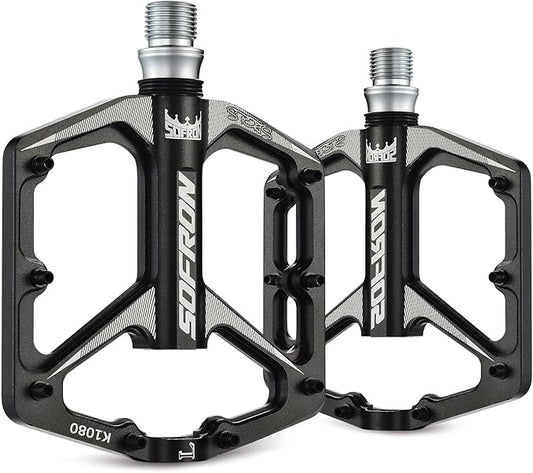 Bike Pedal Aluminum Alloy 9/16" Bike Pedal MTB Wide Platform Flat Non-Slip Bicycle Pedals with 3 Bearings for Mountain Bikes, Road, BMX
