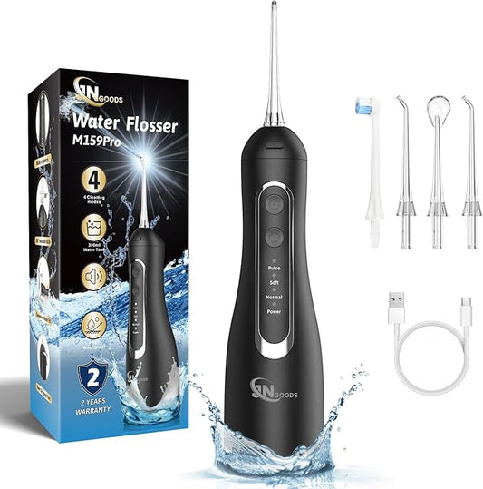 Water Flossers for Teeth, Electric Floss for Adults, Water Dental Picks for Teeth Cleaning and Flossing, Portable Flossers for Travel Size, Travel Bag and 4 Tips, IPX7 Waterproof - Black