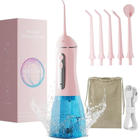 Water Flossers for Teeth, Electric Floss for Adults & Kids, Water Dental Picks, Cleaning and Flossing, Portable Flossers for Travel Size, Gums, Dental Care with Travel Bag, Waterproof - Green/Pink