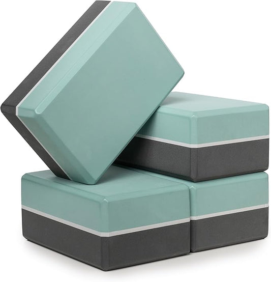 Sunshine Yoga 4" Striped Yoga Block, 4 Pack Bulk EVA Foam Yoga Blocks, Firm and Supportive Yoga Brick, Balance Foam for Stretching, Pilates, and Workout, 4" x 6" x 9"