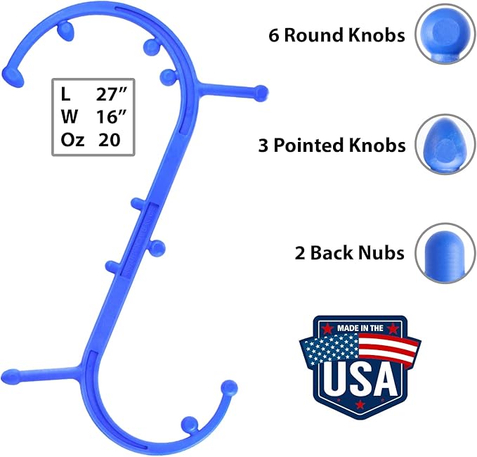 - 2 Hooks Are Better Than 1- The 2 hooks and 11 knobs (in 3 different shapes) were created to alleviate pain and soreness across the entire body. Unlike single muscle hook designs, the two hooks on the Elite let you apply more leverage to more parts of the body. The 3 different shapes include acorns for deep tissue, round for gliding over larger muscle groups, and nubs for the lower back. Also, the Elite offers 4 non-slip grips to ensure that you never lose control while applying pressure.