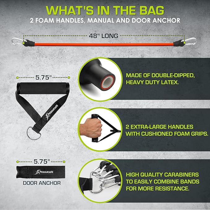 - FEATURES - Includes 2 soft foam handles for superior comfort, door anchor and exercise guide. Great for shoulder raises, chest presses, back rows and more;
