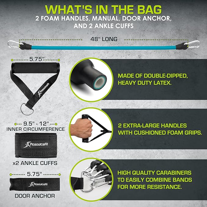 - ON-THE-GO CONVENIENCE: Comes in a carrying case with all of the accessories you need to workout wherever you go. Includes 2 extra large foam handles, 2 pad-ded ankle cuff straps, manual door anchor and exercise guide.
