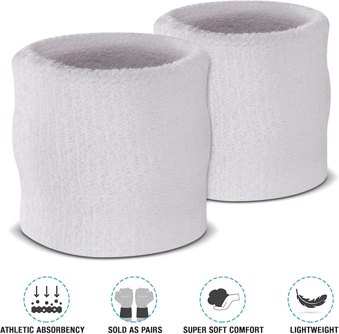 - EXCELLENT SWEAT ABSORPTION & BREATHABILITY: These terry cloth athletic sweatbands offer exceptional absorbency and breathability. Our moisture-wicking wristband effectively absorbs sweat from your hands and wrists, preventing distractions caused by sweaty palms and stinging eyes, and keeping you cool during intense physical activities.