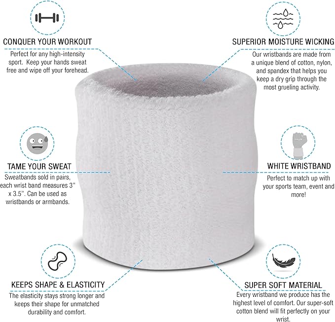 - FEATHERWEIGHT & GENTLE ON THE SKIN MATERIALS: Crafted from a unique blend of Cotton, Nylon, and Spandex, our sweatband and wristband set boasts a lightweight and breathable fabric that feels incredibly soft against the skin. These sweatbands won't cause any irritation, ensuring kids can stay focused and discomfort-free during their activities.