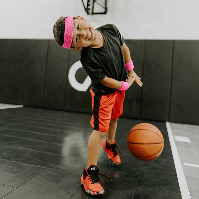 - VERSATILE BANDS FOR A VARIETY OF USES: Our kids' headbands effectively keep hair off their faces and hands sweat-free, enabling them to maintain a solid grip on their racket, field hockey stick, bat, or ball. These head and wrist sweatbands are perfect for basketball, baseball, soccer, softball, and more. They also complement costumes and team uniforms splendidly.