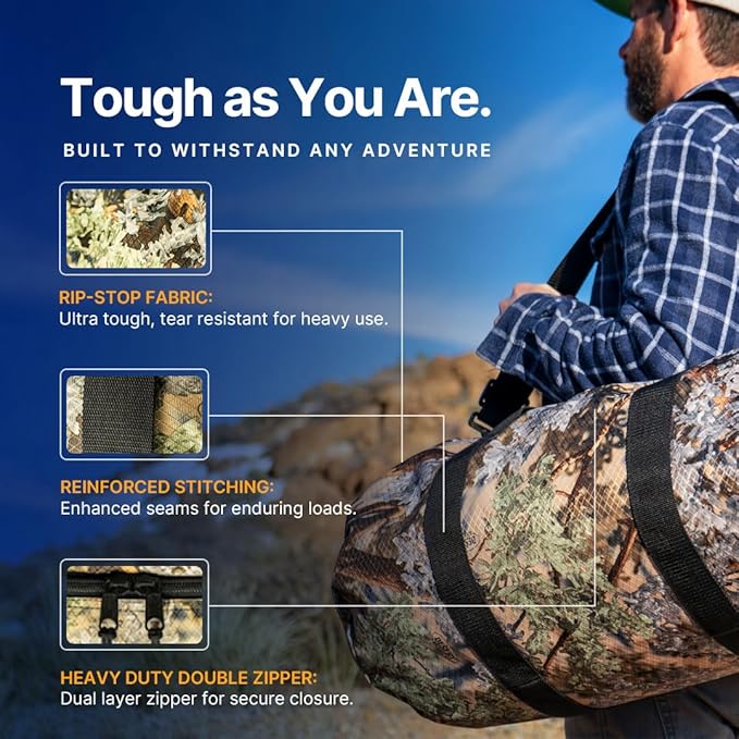 - COMPACT YET SPACIOUS: Measuring 12" x 24", (44 Liter), this big travel bag is compact yet spacious enough for your essentials. Whether you need a gym bag, outdoor Weatherproof duffel bag for men or a camping bag, its large capacity ensures easy transport without compromising storage.