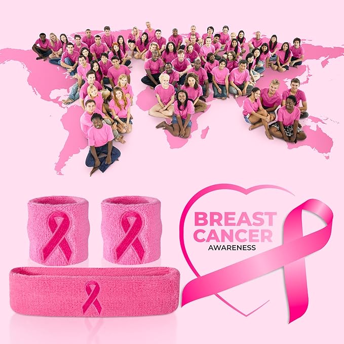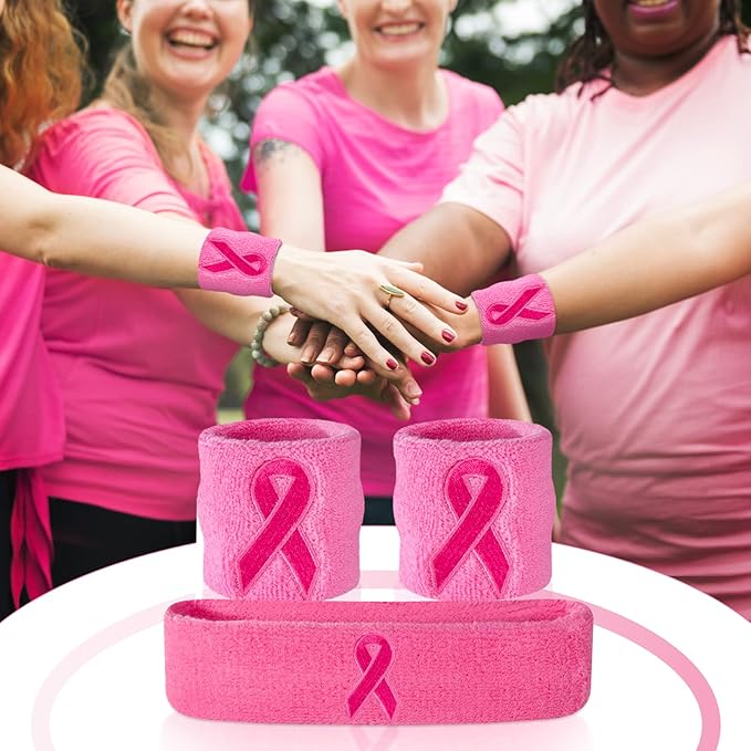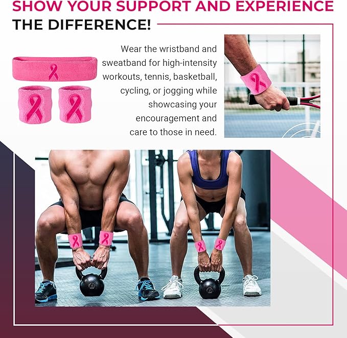 - MULTIPURPOSE PINK RIBBON SWEATBAND SETS: These matching pink exercise headbands and sweatbands feature the breast cancer awareness pink ribbon on each sweatband. Raise awareness for this important cause and feel good knowing a portion of every sale of this set will be donated to charity.