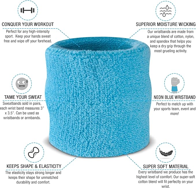 - FEATHERWEIGHT & GENTLE ON THE SKIN MATERIALS: Crafted from a unique blend of Cotton, Nylon, and Spandex, our sweatband and wristband set boasts a lightweight and breathable fabric that feels incredibly soft against the skin. These sweatbands won't cause any irritation, ensuring kids can stay focused and discomfort-free during their activities.