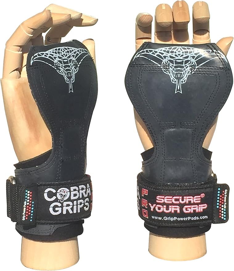 Cobra Grips PRO Weight Lifting Gloves Heavy Duty Straps Alternative Power Lifting Hooks for Deadlifts Wrist Wraps Support Bodybuilding (PRO Model for Men One Size, Black Rubber)