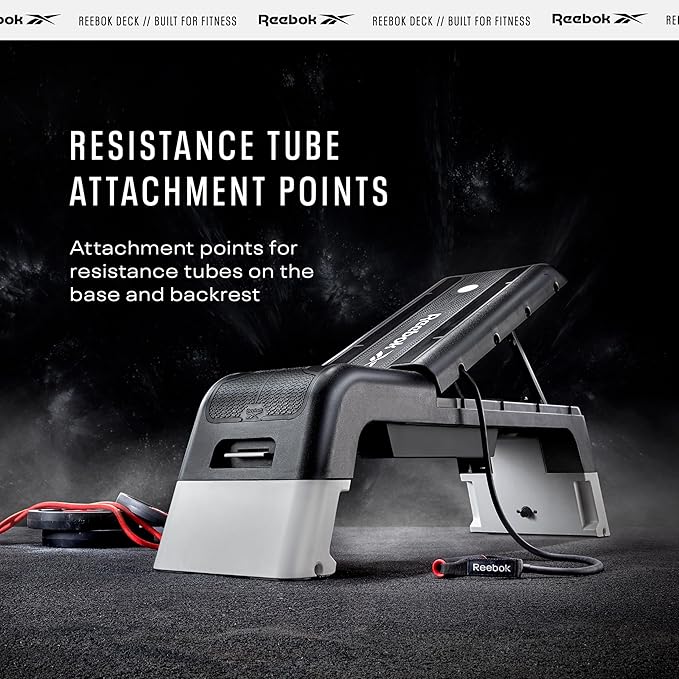 - Built-In Attachment Points & Storage: Fitted with attachment points for resistance tubes, the Reebok workout bench broadens your exercise options. Internal storage compartment keeps smaller accessories organized - a practical addition to any home gym