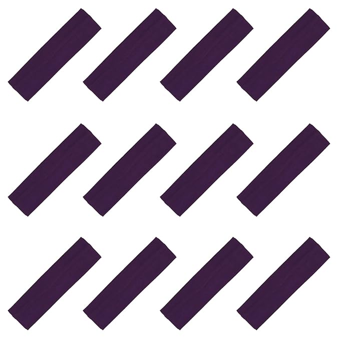 Kenz Laurenz Soft and Stretchy Elastic Cotton Headbands, Pack of 12, Plum