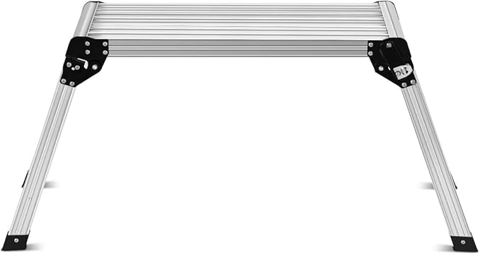 Giantex Work Platform Aluminum Step Ladder Drywall Safe CE Approved of Capacity 330 LBS Heavy Duty Portable Bench Folding Ladders Stool w/Non-Slip Mat (Silver)