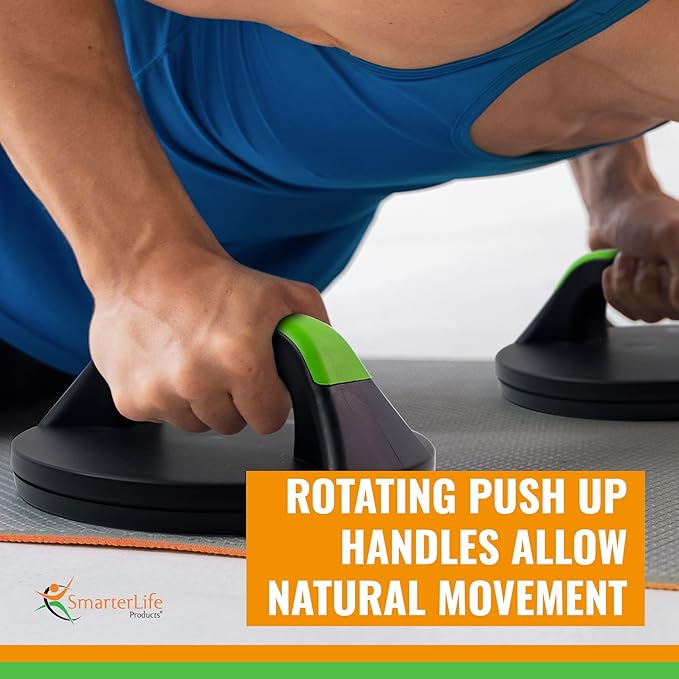 - ROTATING PUSH-UP HANDLES: Unlike fixed push-up boards, which put the wrists at painful angles, our push-up handles rotate and adjust to your position for a wider range of motion. SmarterLife's push-up bars follow the contour of your hand for optimal comfort when you move your hands, so you can distribute your weight evenly to get a maximum workout without straining your body.