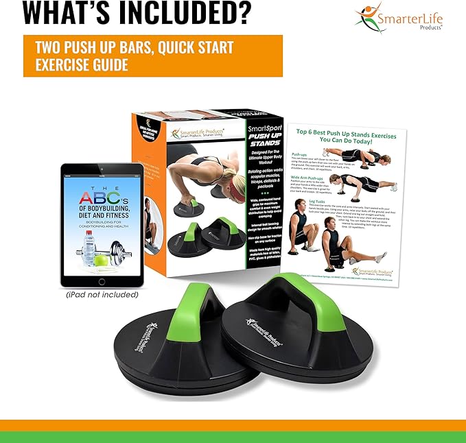- PREMIUM WORKOUT GUIDE: Stuck on what to do or where to start? Our push-up handles come with a Quick Start Exercise Guide in the box. Designed by a physical therapist, it contains easy and practical exercises that you can start right away! It come with instructions on how to join our SmarterLife Club, where you can find advanced workout guides that you can do at home.