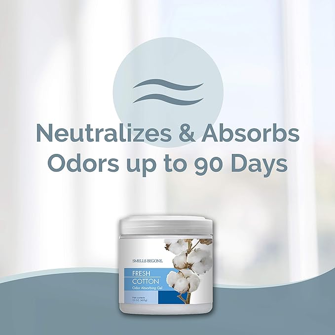 SMELLS BEGONE Air Freshener Odor Absorber Gel - 15 oz, Pack of 2 - Absorbs and Eliminates Odor in Pet Areas, Bathrooms, Cars, & Boats - Made with Essential Oils - Fresh Cotton Scent