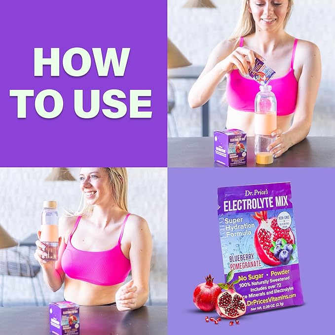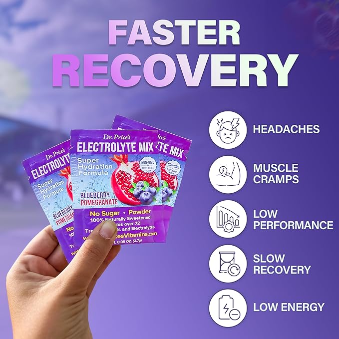 Dr. Price’s Electrolyte Mix | Sugar-Free Hydration Powder with 72+ Trace Minerals | No Sugar, Fast-Dissolving Electrolytes Powder Packets | Blueberry-Pomegranate (30 Packs)