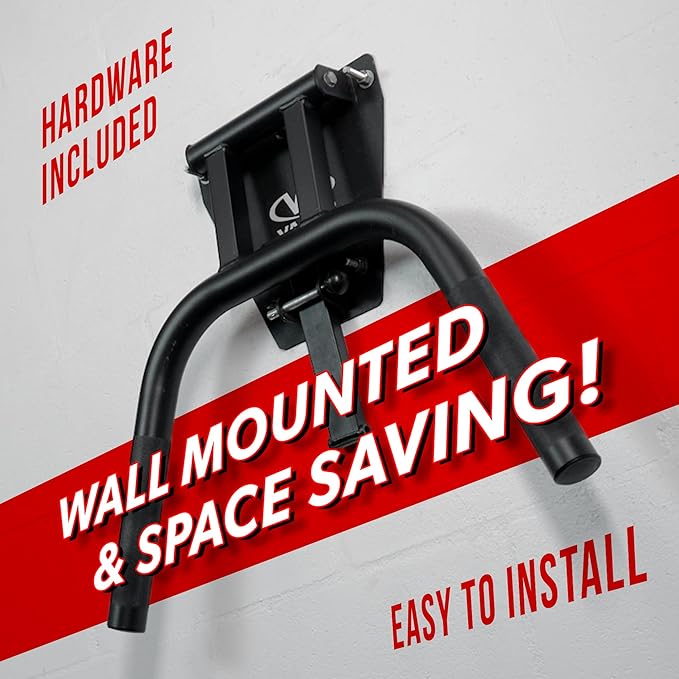 - Heavy-Duty Wall-Mounted Steel Frame - Built from premium steel with a black powder-coated finish for lasting strength, this dip station mounts securely for reliable bodyweight training at home.