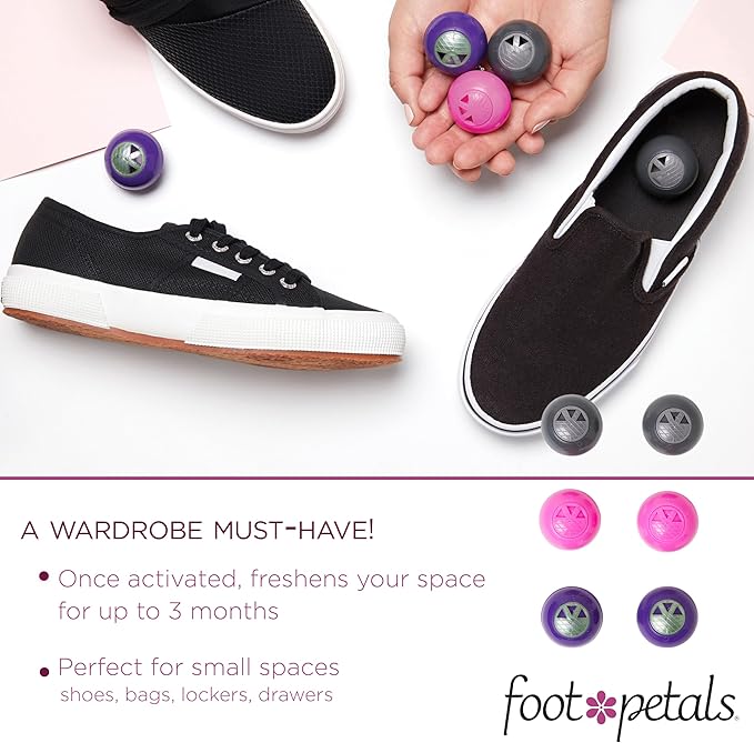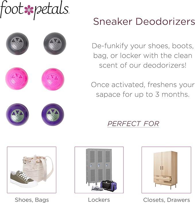 Foot Petals Sneaker Deodorizers - Freshener Balls For Shoes, Gym Bags, Lockers, or Drawers, 3-Pack, Girly