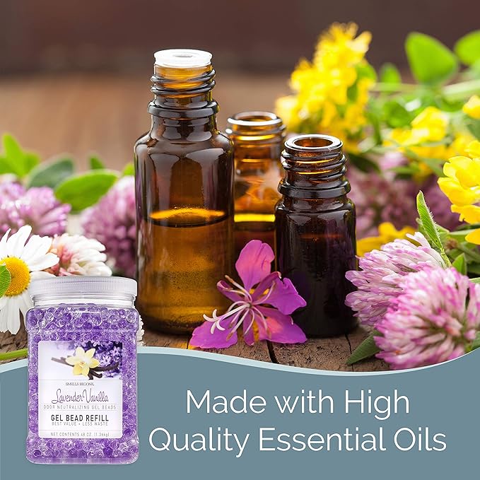 SMELLS BEGONE 48 oz Odor Eliminator Gel Bead Refill - Eliminates Odor from Bathrooms, Boats, Cars, RVs & Pet Areas - Made with Essential Oils - Lavender Vanilla Scent