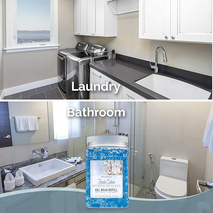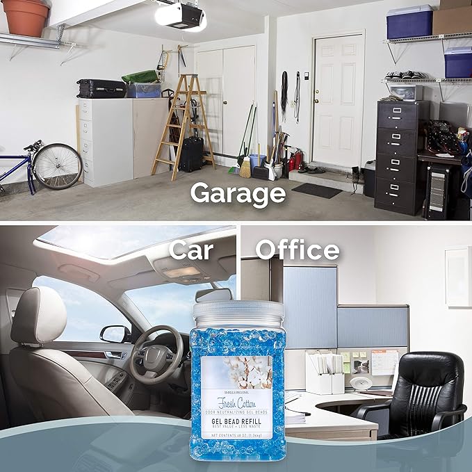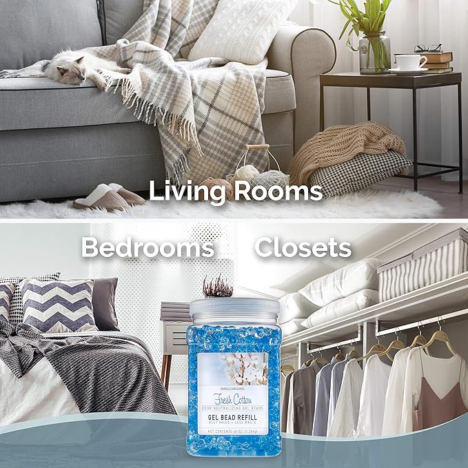 SMELLS BEGONE 48 oz Odor Eliminator Gel Bead Refill - Eliminates Odors from Bathrooms, Cars, Boats, RVs & Pet Areas - Made with Essential Oils - Fresh Cotton Scent