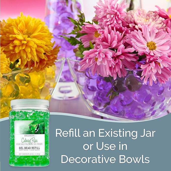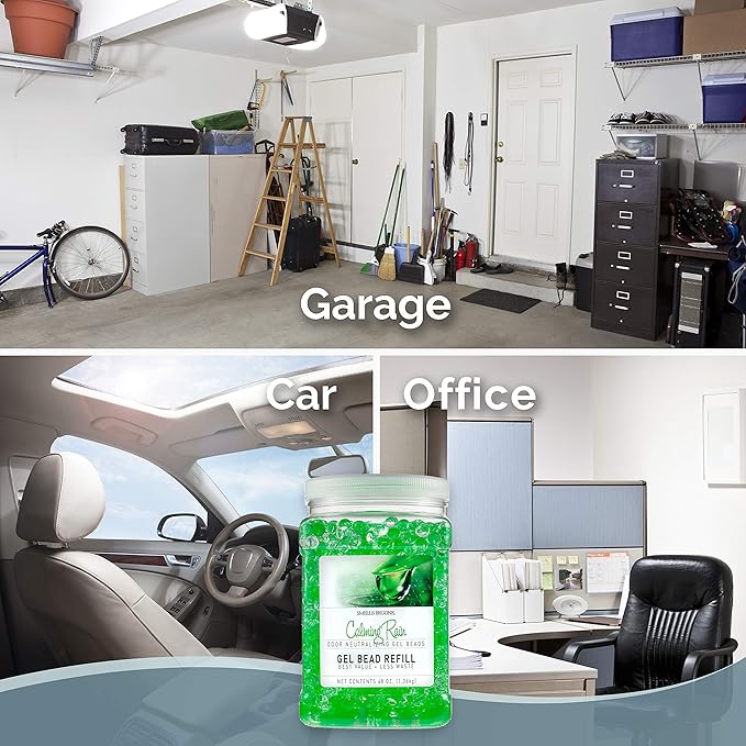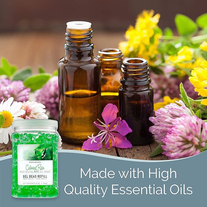 SMELLS BEGONE 48 oz Odor Eliminator Gel Bead Refill - Odor Eliminator for Bathrooms, Cars, Boats, RVs & Pet Areas - Made with Essential Oils - Calming Rain Scent