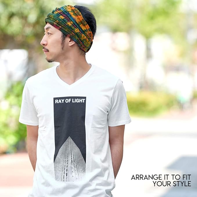 - ARRANGE RAVE HEADWRAPS TO FIT YOUR STYLE - You can wear the marble dye hair bands with the bow in the front or you can wear it backwards, arranged as a colorful beanie, suits kids, teens, girls, boys, non-binary, men and women! Our tied dye process also features a psychedelic flowers pattern, which is soft & had sweat wicking properties