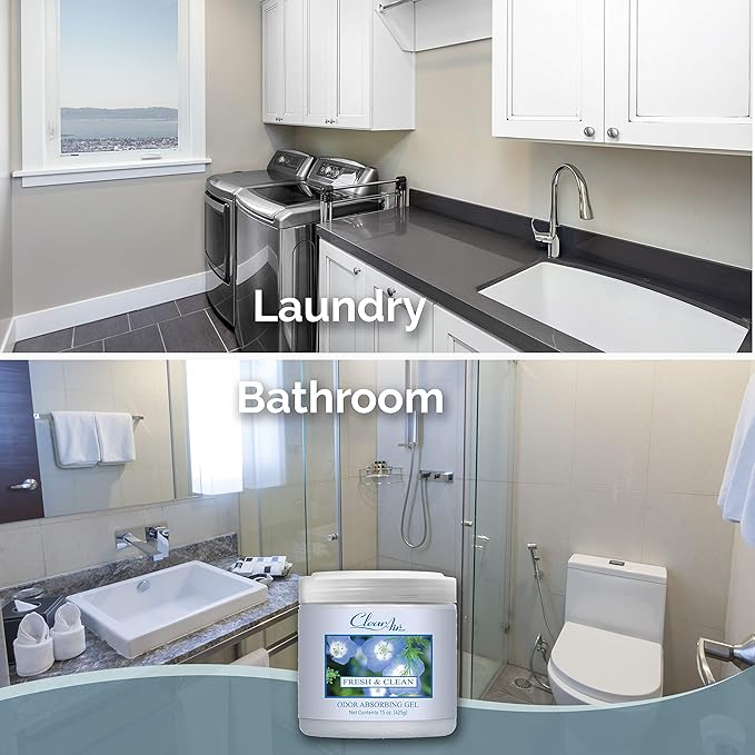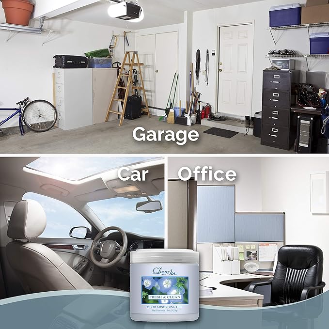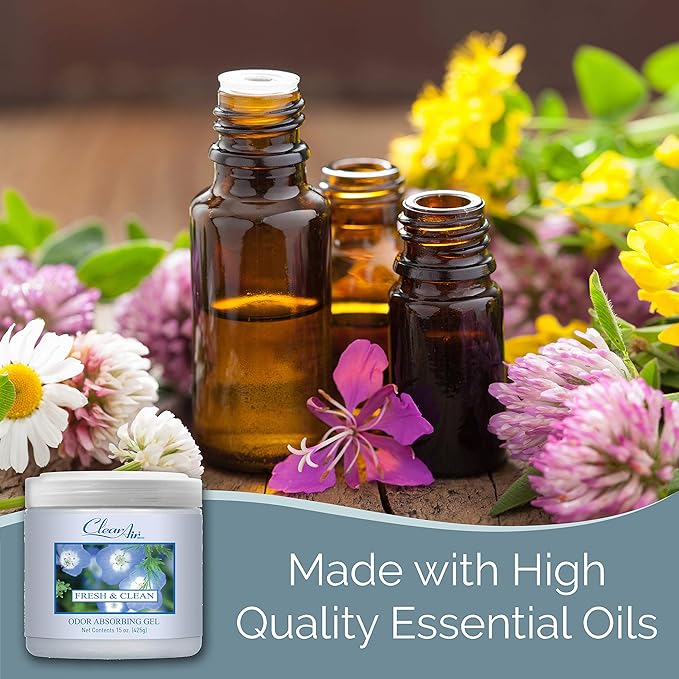 Clear Air Odor Absorber Gel - 15 oz, Pack of 2 - Air Freshener Absorbs and Eliminates Odors in Bathrooms, Cars, Boats, RVs and Pet Areas - Made with Essential Oils - Fresh & Clean Scent