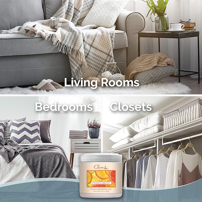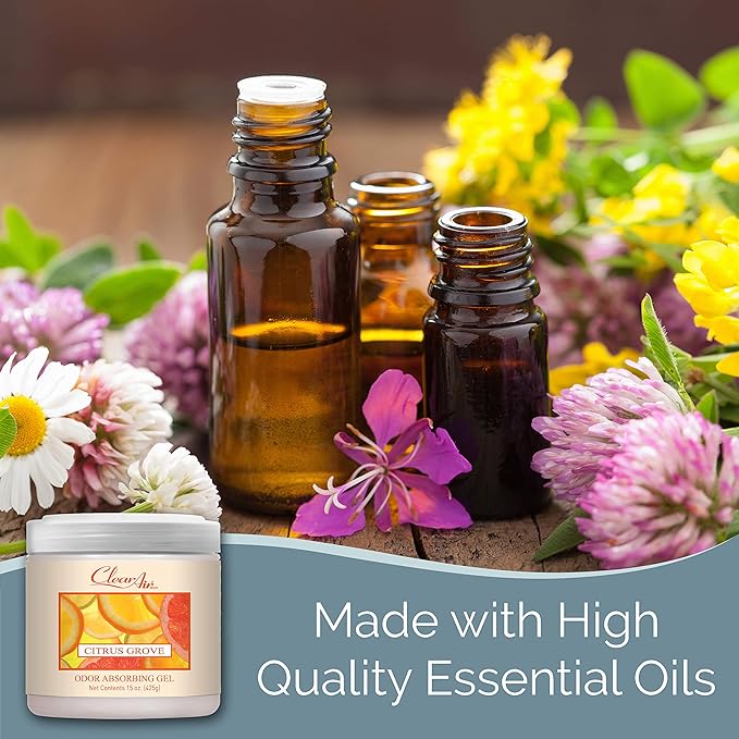 Clear Air Odor Absorber Gel - 15 oz, Pack of 2 - Air Freshener Absorbs and Eliminates Odors in Bathrooms, Cars, Boats, RVs and Pet Areas - Made with Essential Oils - Citrus Grove Scent