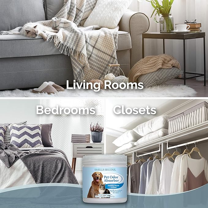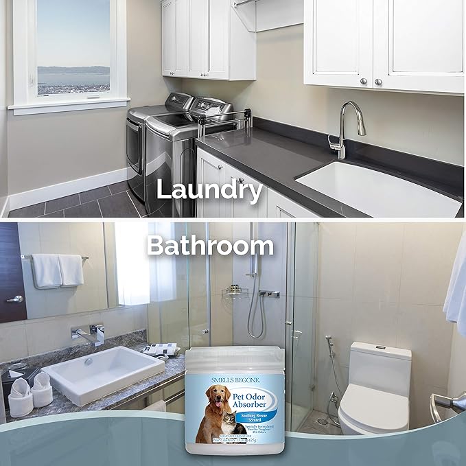 SMELLS BEGONE Air Freshener Pet Odor Absorber Gel - 15 oz, Pack of 2 - Absorbs and Eliminates Odor in Pet Areas, Bathrooms, Cars, & Boats - Made with Essential Oils - Soothing Breeze Scent