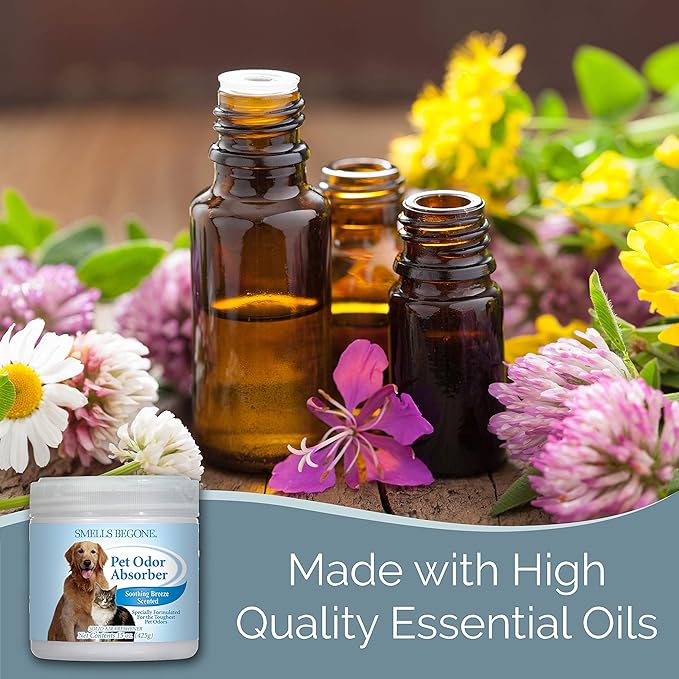 - MADE WITH ESSENTIAL OILS - Each Pet Odor Absorber contains 15 Ounces of product. The products are made with plant derived ingredients and formulated with a blend of essential oil based fragrances which adds a distinct and unforgettable aroma to any area you place and use the jar.