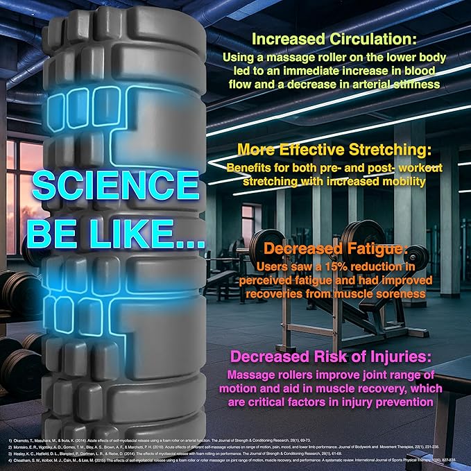 - QUICK AND EFFECTIVE: Foam rolling for just 20 minutes after exercise, and again at 24 and 48 hours has been clinically proven to reduce recovery time by 20%, increase flexibility by 10%, and reduce soreness by as much as 30%. They have also been shown to decrease the risk of injuries in the first place