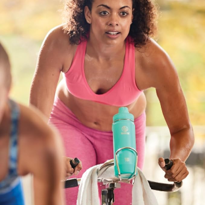 - Insulated Spout Lid: This stainless steel water bottle comes with an innovative leakproof insulated spout lid that allows for easy one-handed drinking or pouring. It features a hinge lock that keeps the cap out of your way while drinking