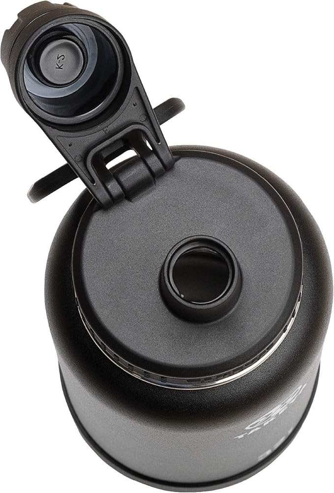 - Insulated Spout Lid: This stainless steel water bottle comes with an innovative leakproof insulated spout lid that allows for easy one-handed drinking or pouring. It features a hinge lock that keeps the cap out of your way while drinking