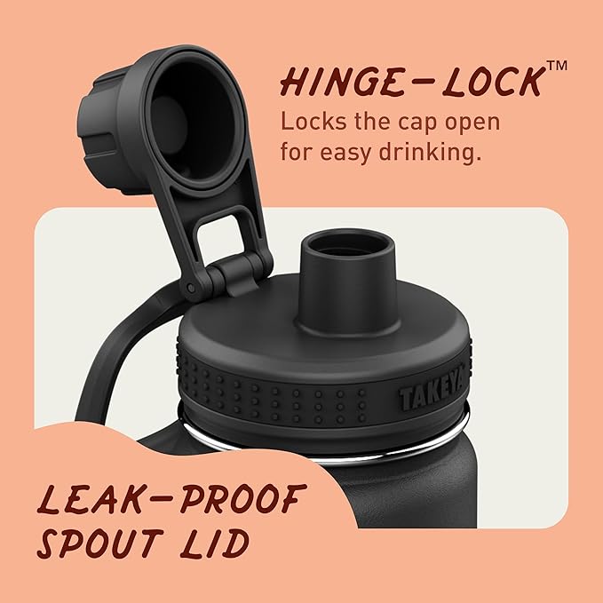 Takeya Actives Water Bottle with Spout Lid - Bottle with Double Stainless Steel Insulation - Dishwasher Safe & BPA-Free - Bottle with Spout Lid & Removable Bumper - 24 oz, Onyx