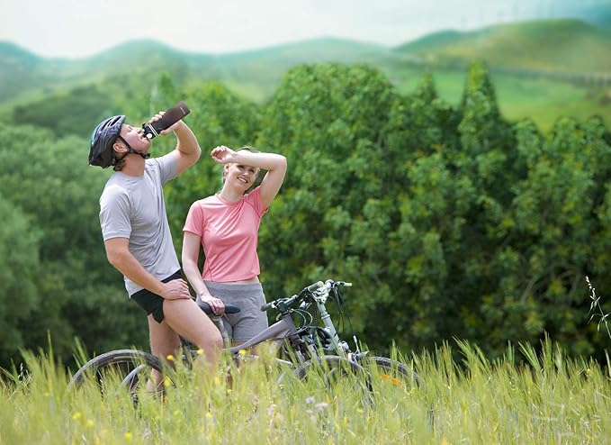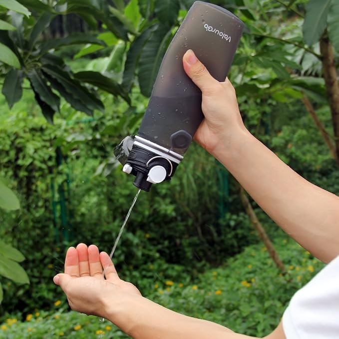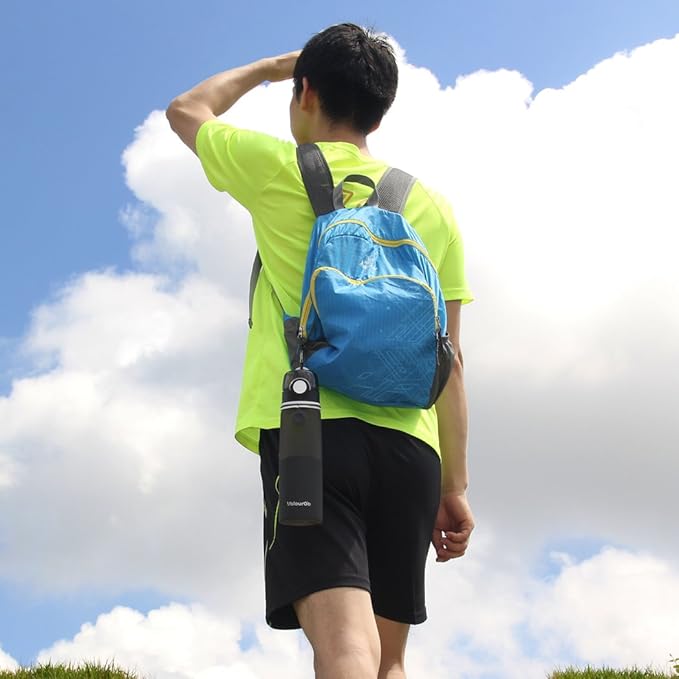 - STYLISH AND PORTABLE - This unique travel water bottle has 4 eye-catching colors available. Perfect for outdoor use such as camping, traveling, gym, biking, hiking, running, yoga, exercise, work, and school.