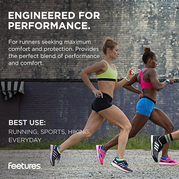 - Sports Sock: These Feetures socks are engineered with Targeted Compression and anatomical design that conform to the left and right structure of the foot providing a custom-like fit and reduced risk of blisters