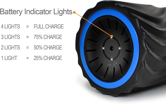 Zyllion Rechargeable Vibrating Foam Roller with 4 Speeds - Cordless Electric Deep Tissue Massager for Muscle Pain Relief, Black/Blue, ZMA-22